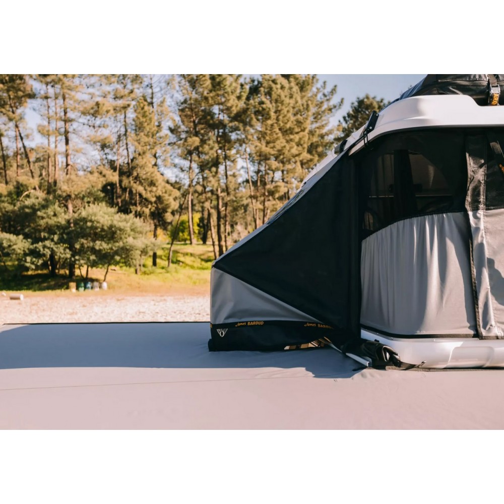 The James Baroud Tunnel is fully compatible with the Evolution Series rooftop tents, including the Evasion, Grand Rand, and Space models. It seamlessly integrates with both the Classic Awning and Falcon Awning 270º, offering enhanced versatility and customization for your camping setup. Simple to install and remove, the James Baroud Tunnel is a must-have accessory for outdoor enthusiasts seeking spaciousness and weather protection.