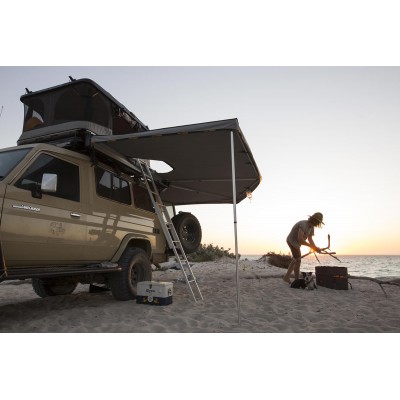 The James Baroud Falcon Awning 270º is the pinnacle of awning innovation. Designed to stand independently by a self supporting mechanism, this wraparound “wing”-type awning redefines convenience and protection for outdoor enthusiasts. With an expansive 270-degree coverage, swift setup, and exceptional wind resistance, the Falcon offers a premium solution for those seeking maximum shade and extended living space in any weather condition.